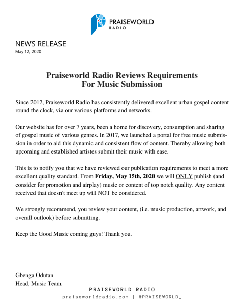 Important Praiseworld Radio Reviews Requirements For Music Submission Praiseworld Radio Africa S 1 Online Gospel Radio Station Nigeria