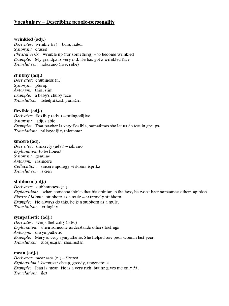 Vokabular Describing People Syntax Lexicology