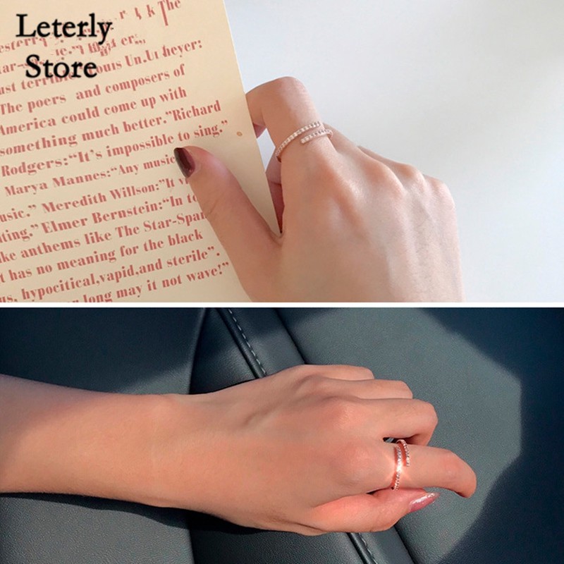 Leterly Korean Version Of The Sleek Minimalist Personality Beautiful Zircon Opening Adjustable Ring Shopee Indonesia