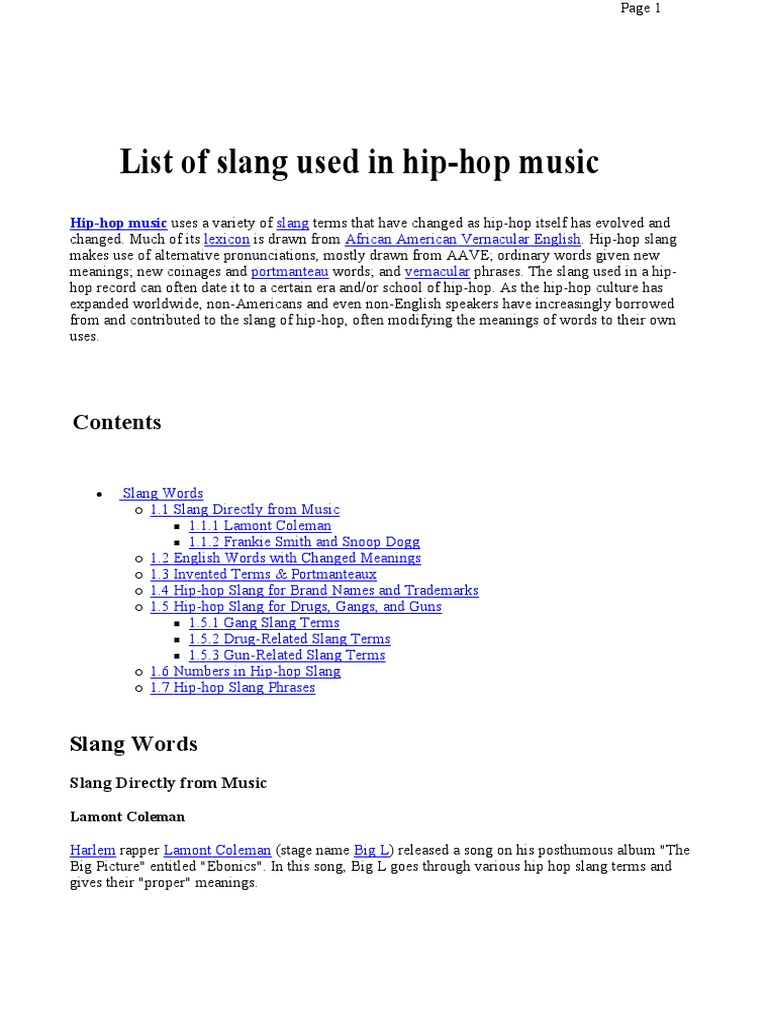 16522469 List Of Slang Used In Hip Hop Music Pdf Hip Hop Music Luxury Vehicles