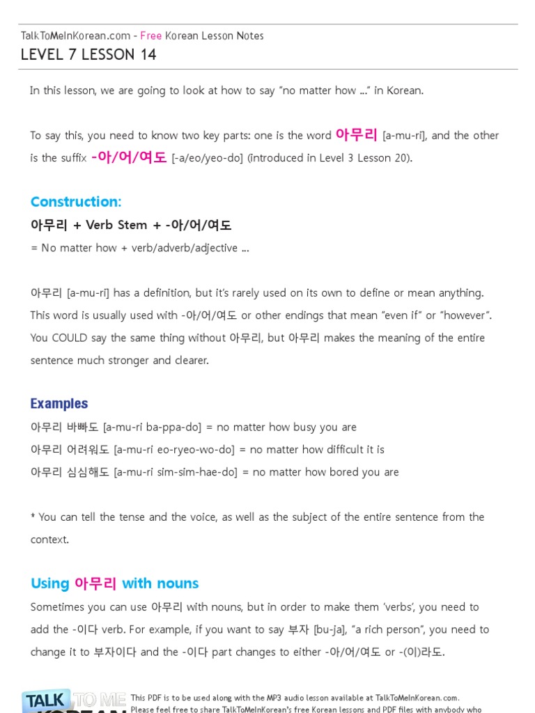 Talk To Me In Korean Level 7 Lesson 14 Verb Adverb