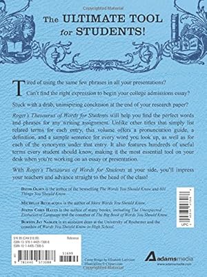 Amazon Com Roget S Thesaurus Of Words For Students Helpful Descriptive Precise Synonyms Antonyms And Related Terms Every High School And College Student Should Know How To Use 0045079573086 Olsen David Bevilacqua Michelle Hayes