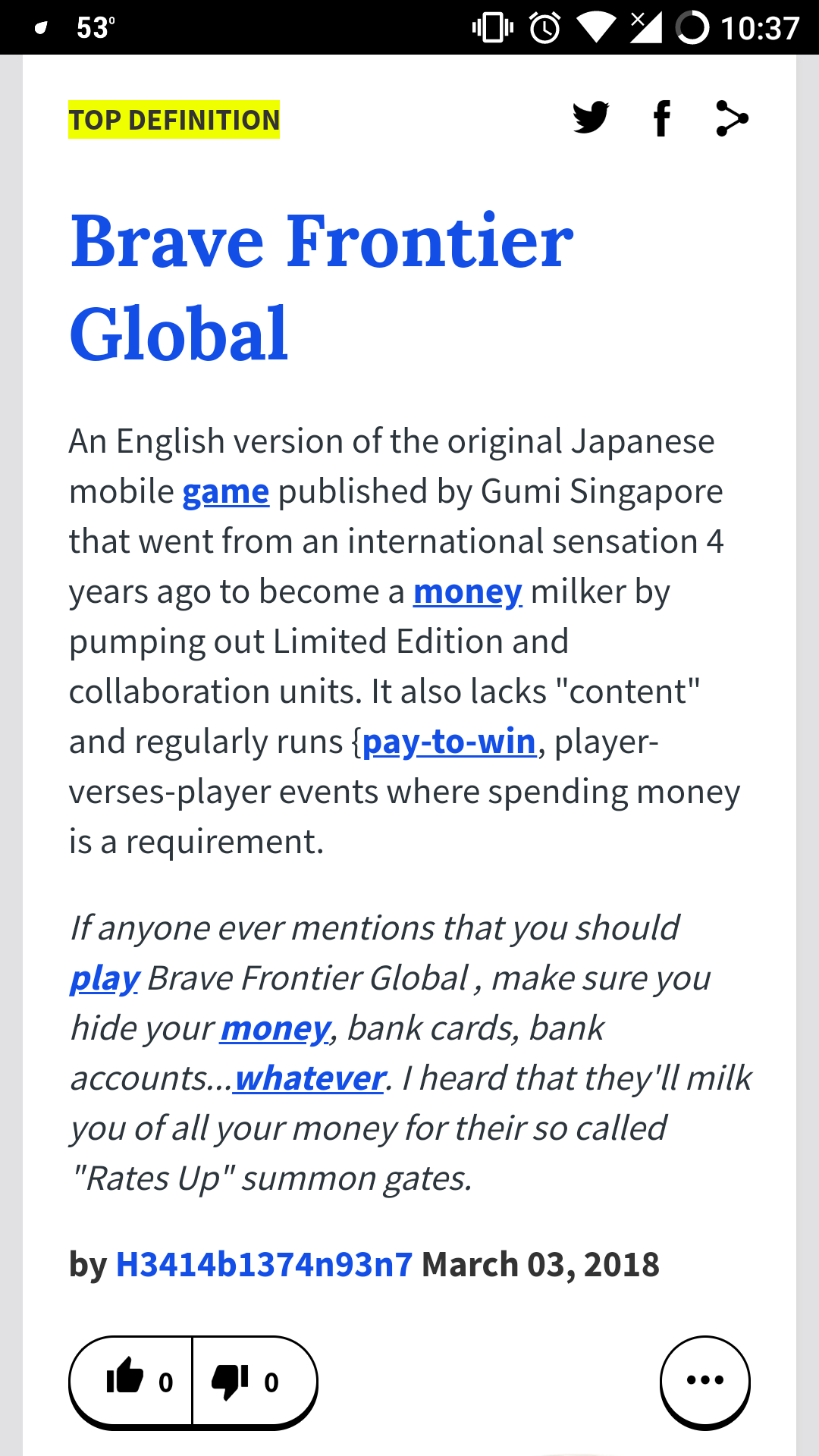 Found An Urban Dictionary Entry For Brave Frontier Fandom