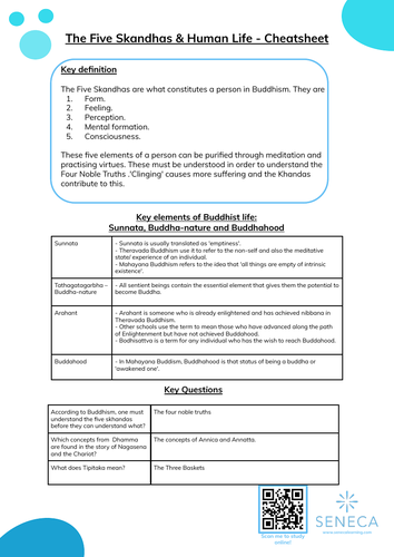 Buddhism Skandhas Human Life Worksheet Cheatsheet For Gcse Rs Teaching Resources