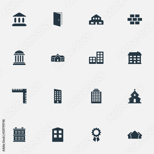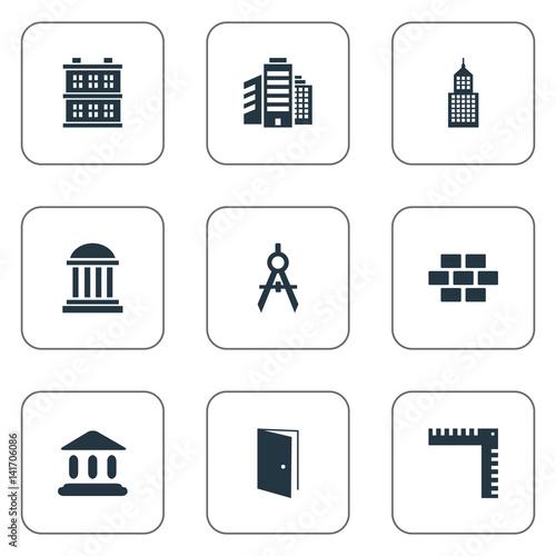 Vector Illustration Set Of Simple Architecture Icons Elements Length Construction Offices And Other Synonyms Door Offices And Hut Buy This Stock Vector And Explore Similar Vectors At Adobe Stock Adobe Stock