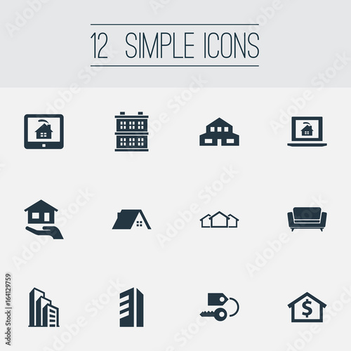 Vector Illustration Set Of Simple Property Icons Elements High Rise Capital Online Property And Other Synonyms Possession Business And Hut Buy This Stock Vector And Explore Similar Vectors At Adobe Stock