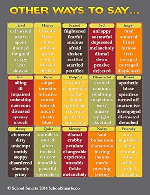 Amazon Com Synonyms Chart By School Smarts List Of Synonyms Words Poster For English Classroom To Encourage Children 120 Popular Words 17x22 Everything Else
