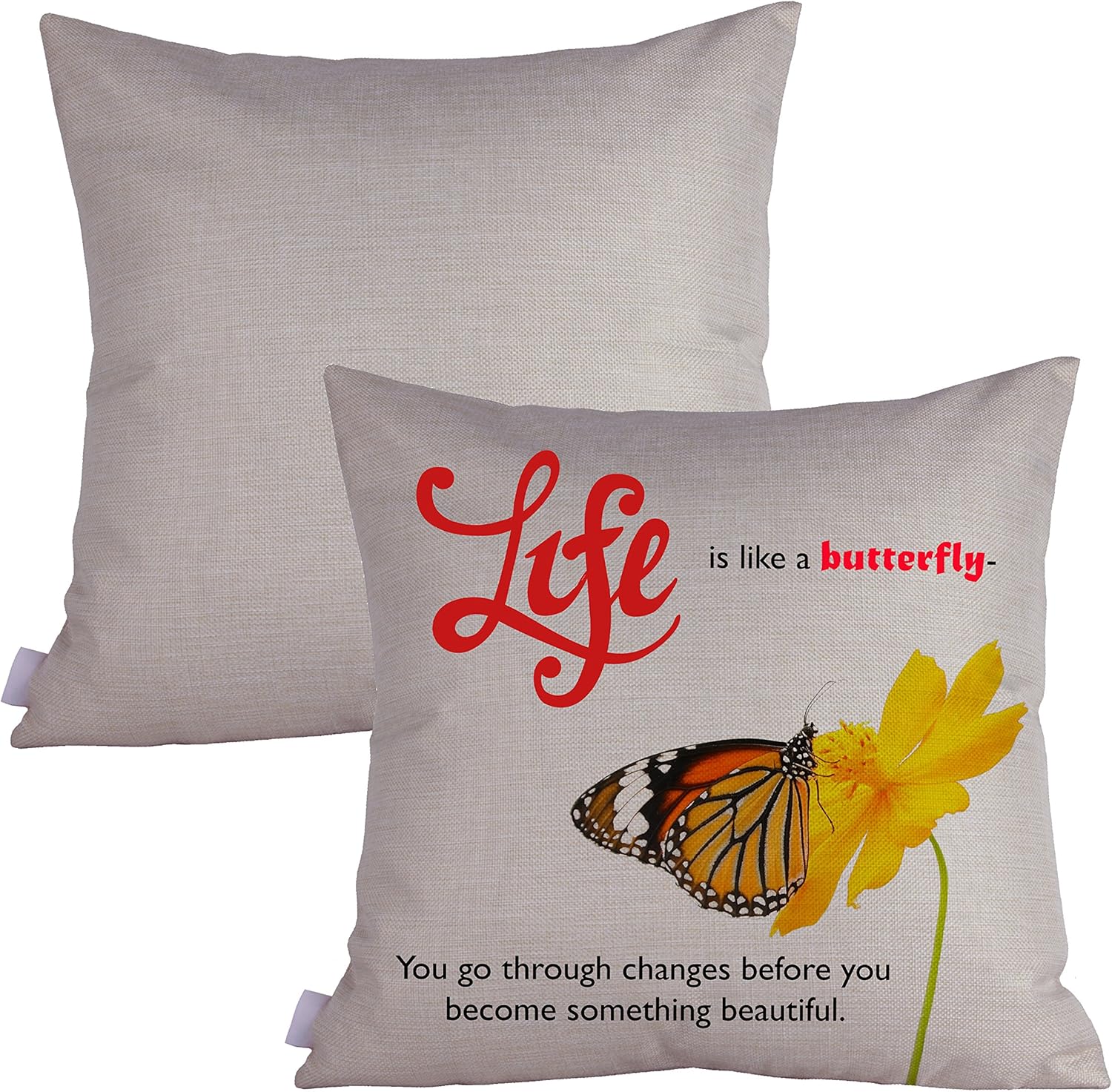 Amazon Com Queenie 2 Pcs All About Butterfly Quotable Quotes Meaningful English Writing Decorative Pillowcase Thick Cotton Linen Cushion Cover 18 X 18 Inch 45 X 45 Cm Life Is Iike Butterfly Home Kitchen