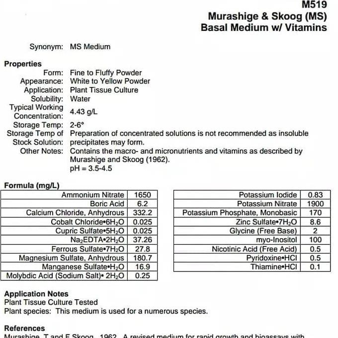Murashige Skoog Basal Medium With Vitamins 10 Liter Di Lapak Toko Mugmina Bukalapak