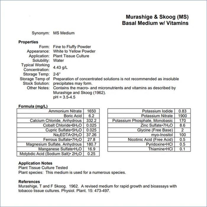 Alat Murashige Skoog Ms Basal Medium With Vitamins 100 Liter Shopee Indonesia