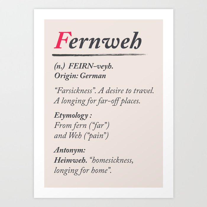 Fernweh Dictionary Definition Word Meaning Illustration Etymology Desire To Travel Farsickness Art Print By Stefanoreves Society6
